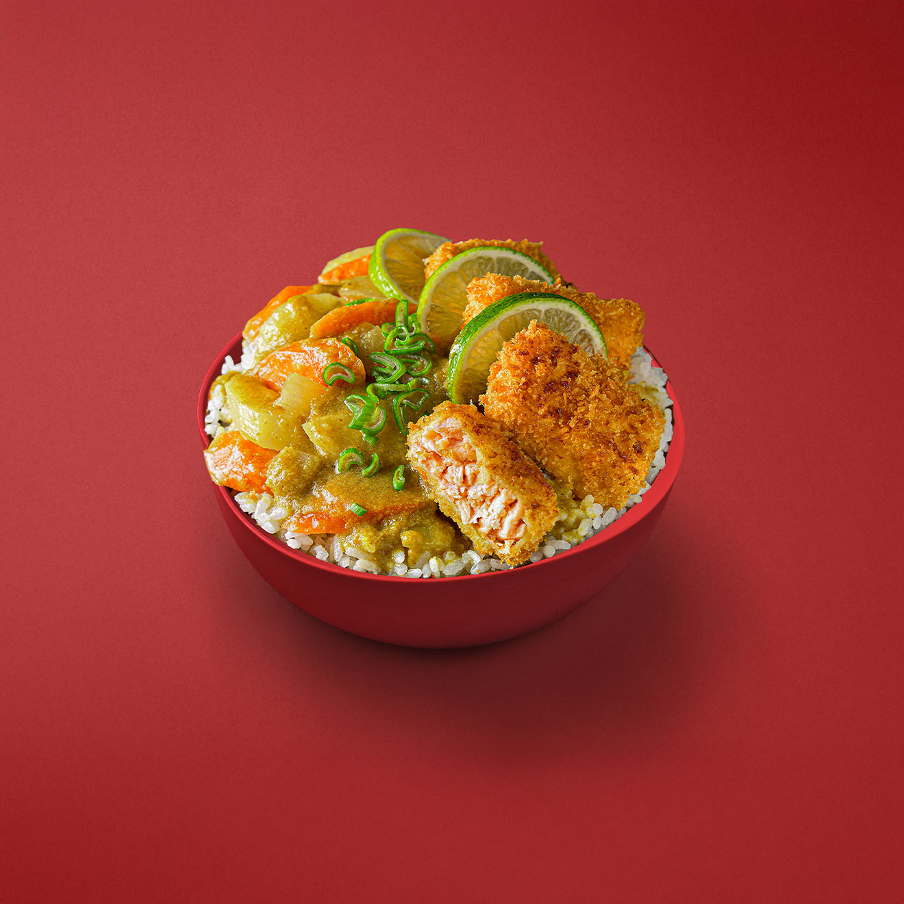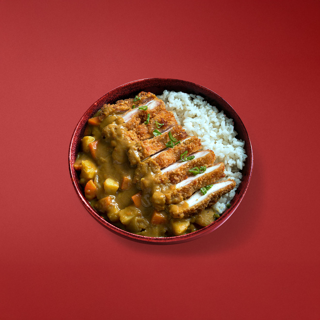 EN SAUCE CURRY JAPONAIS, SUR UN BOL DE RIZ CHAUD.