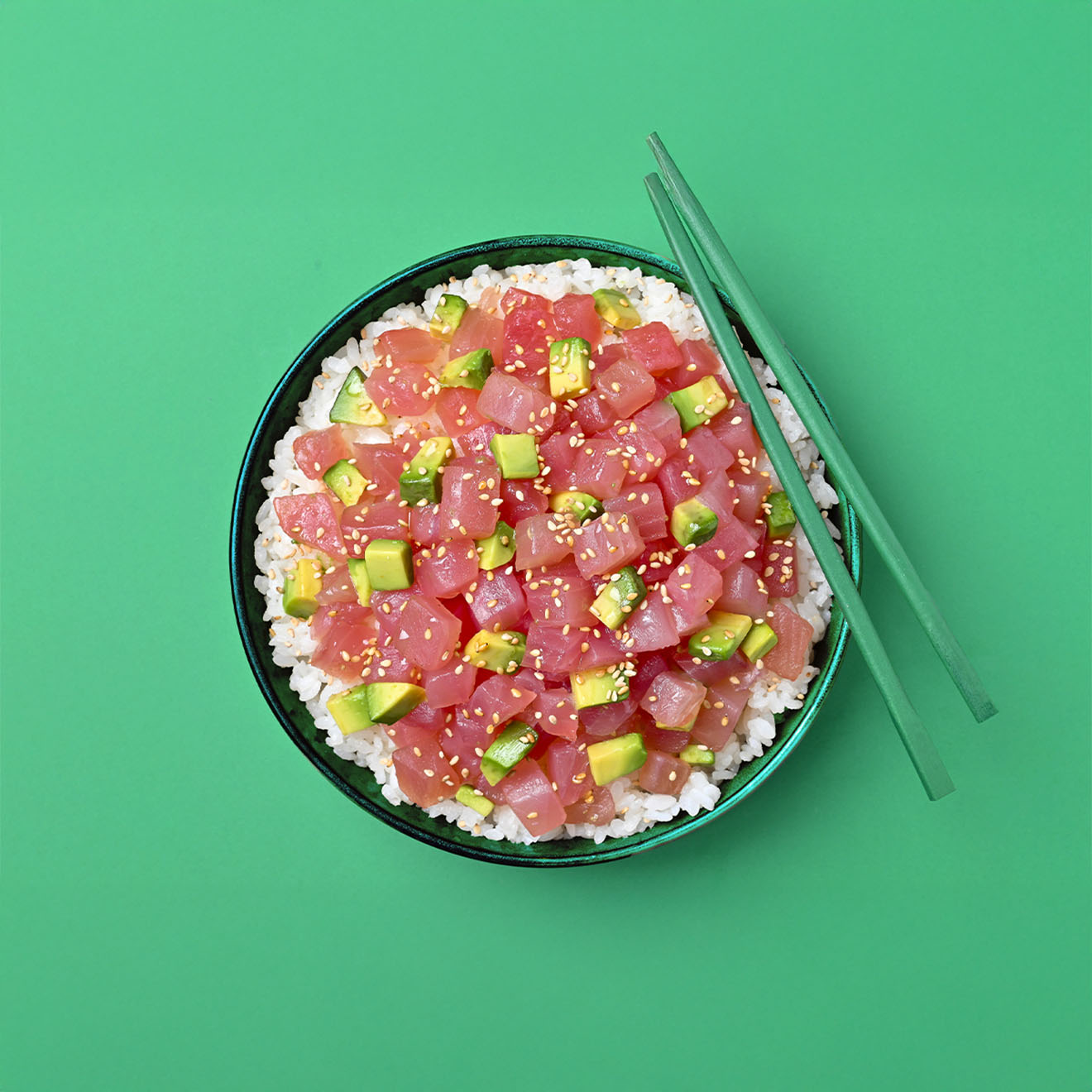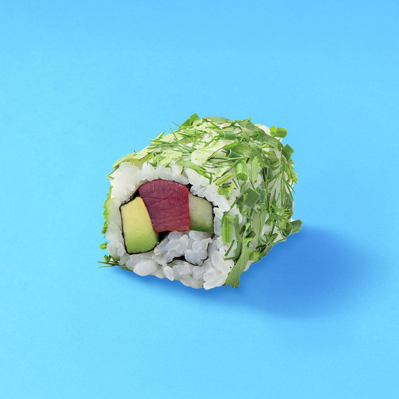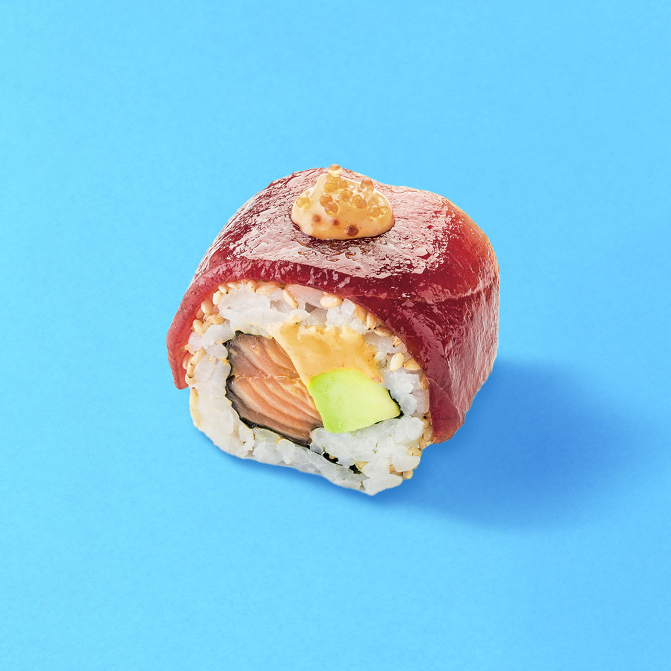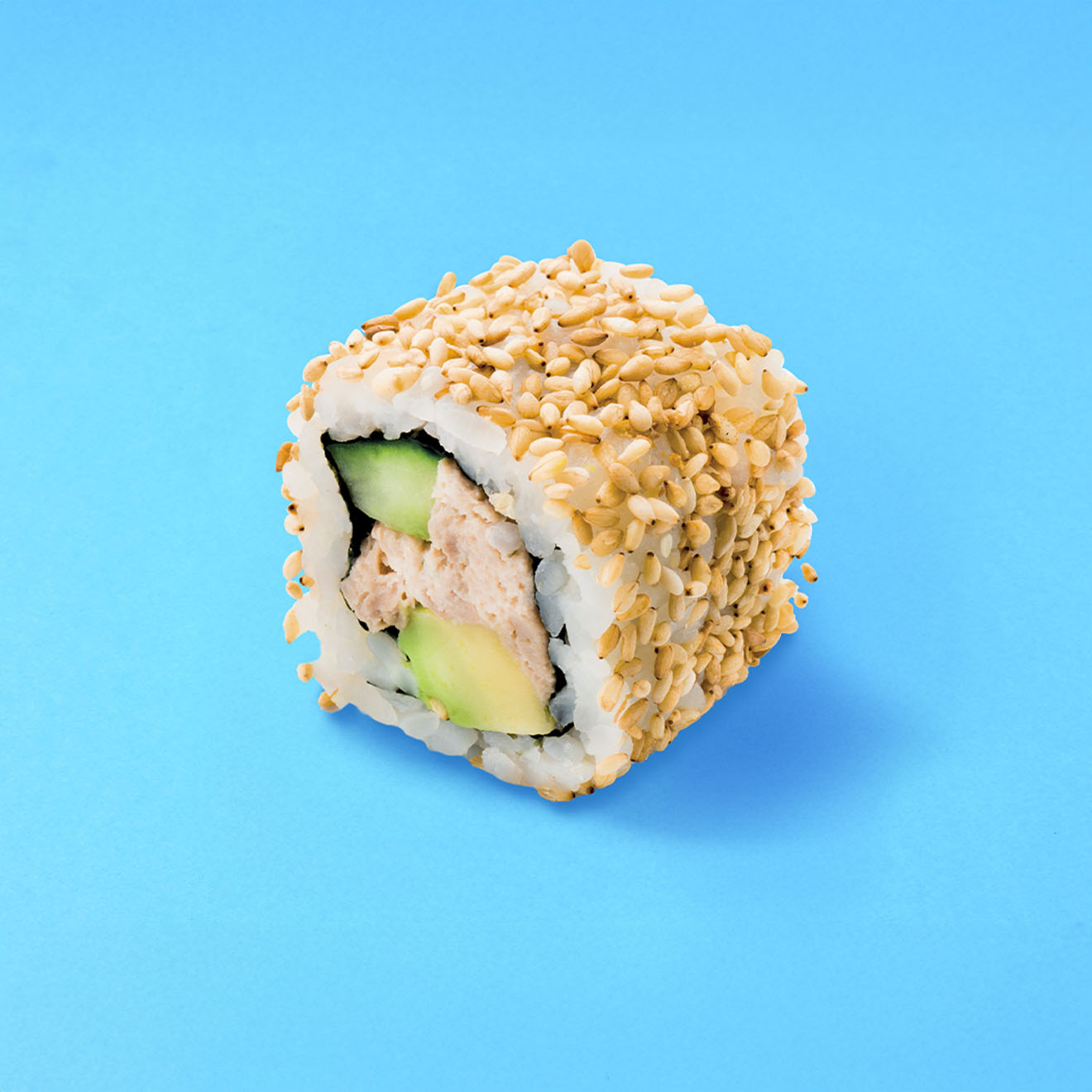 THON, AVOCAT, CONCOMBRE, SPICY MAYO, FEUILLE DE NORI, SÉSAME.