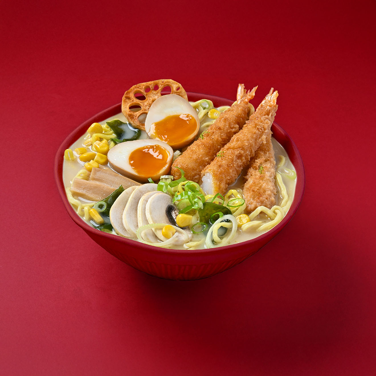 NOUILLES DE BLÉ, BOUILLON PAITAN, CREVETTES TEMPURA,