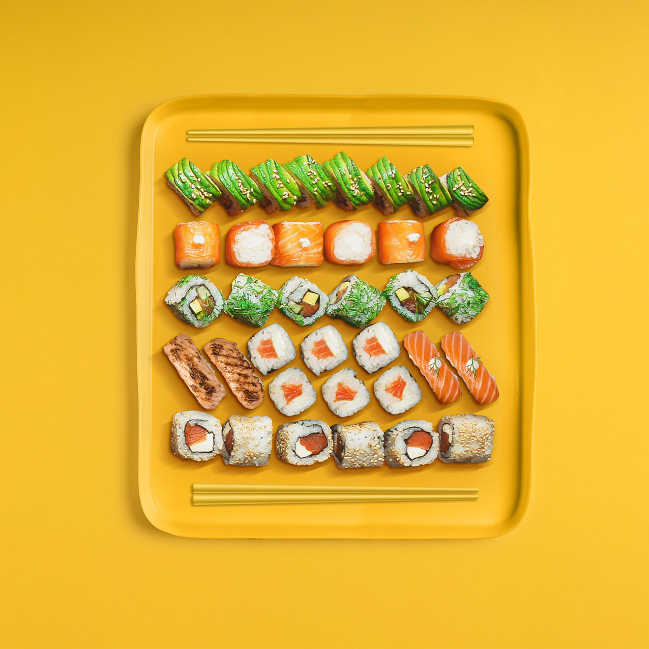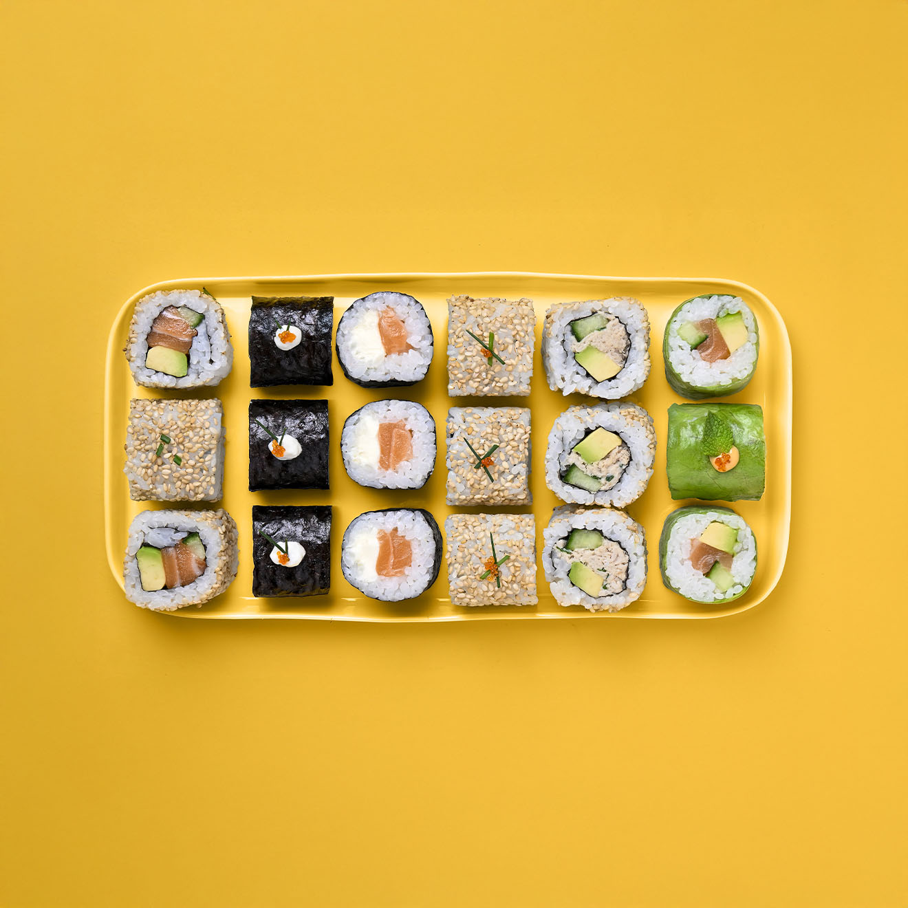 2 SUSHI SAUMON CHEESE, 2 SUSHI SAUMON AVOCAT, 4 SUSHI THON, 4 SUSHI SAUMON, 6 FRESHROLL TATAKI, 8 CALIFORNIA THON CUIT, 6 MAKI SAUMON AVOCAT, 8 MAKISLIM VEGGIE, 8 GREENROLL SAUMON, 8 DRAGON