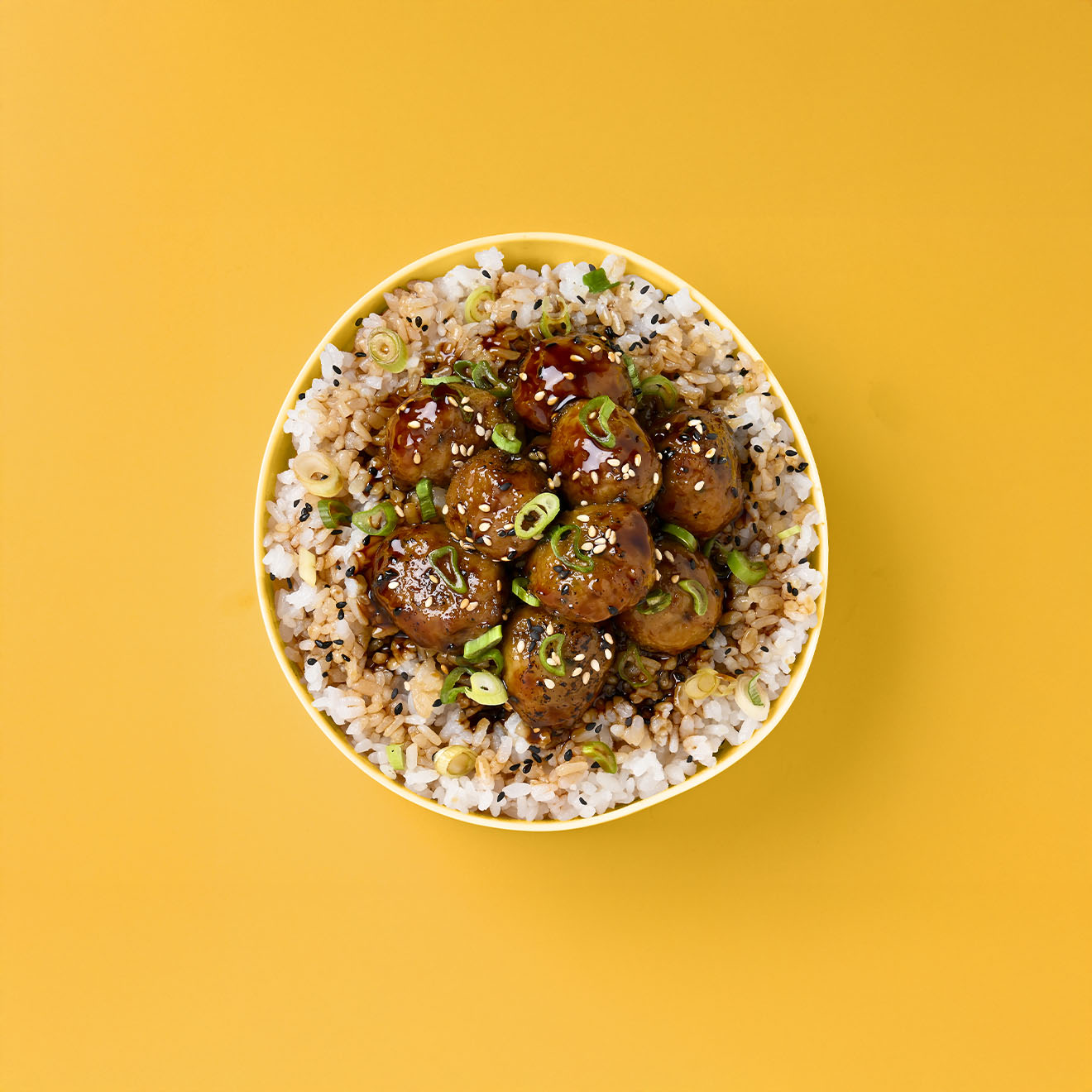 9 BOULETTES DE POULET TERIYAKI SUR UN BOL DE RIZ CHAUD + 1 side