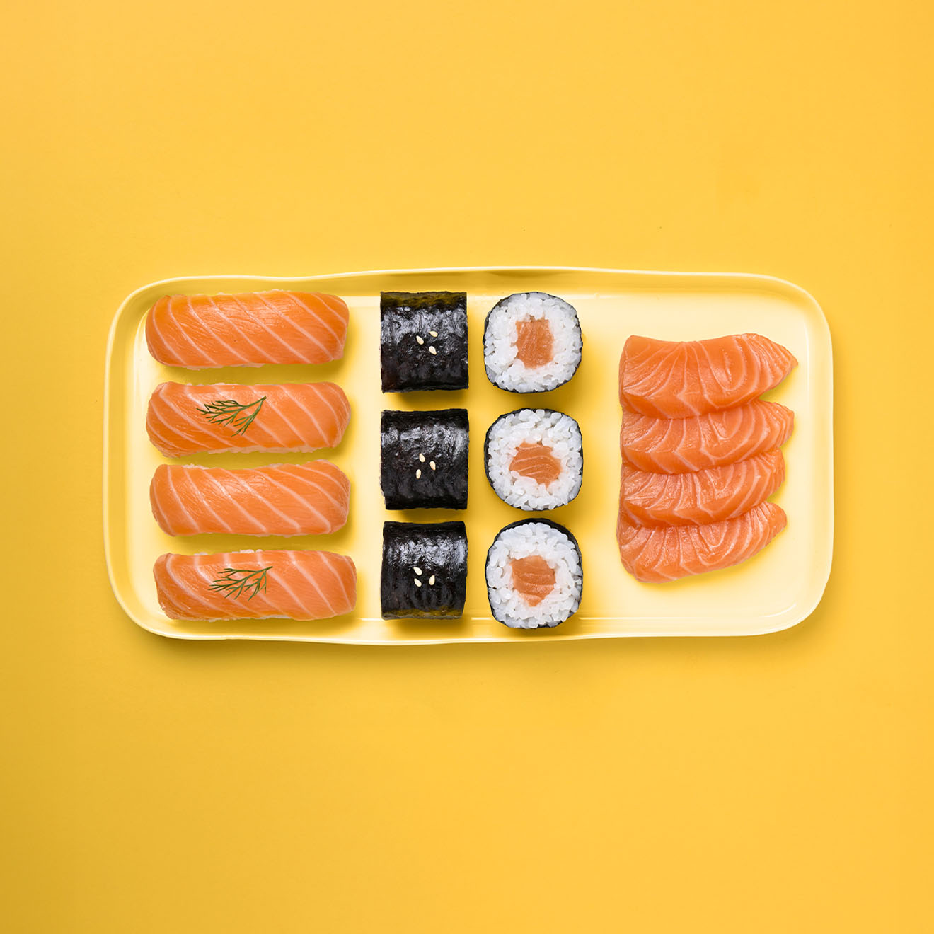 4 SUSHI SAUMON, 6 MAKI SAUMON, 4 SASHIMI SAUMON + 2 sides
