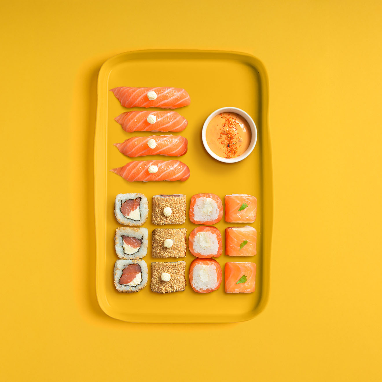 6 MAKI SAUMON CHEESE, 6 CALIFORNIA THON CUIT, 3 MAKISLIM SAUMON, 3 CALIFORNIA SAUMON + 2 sides