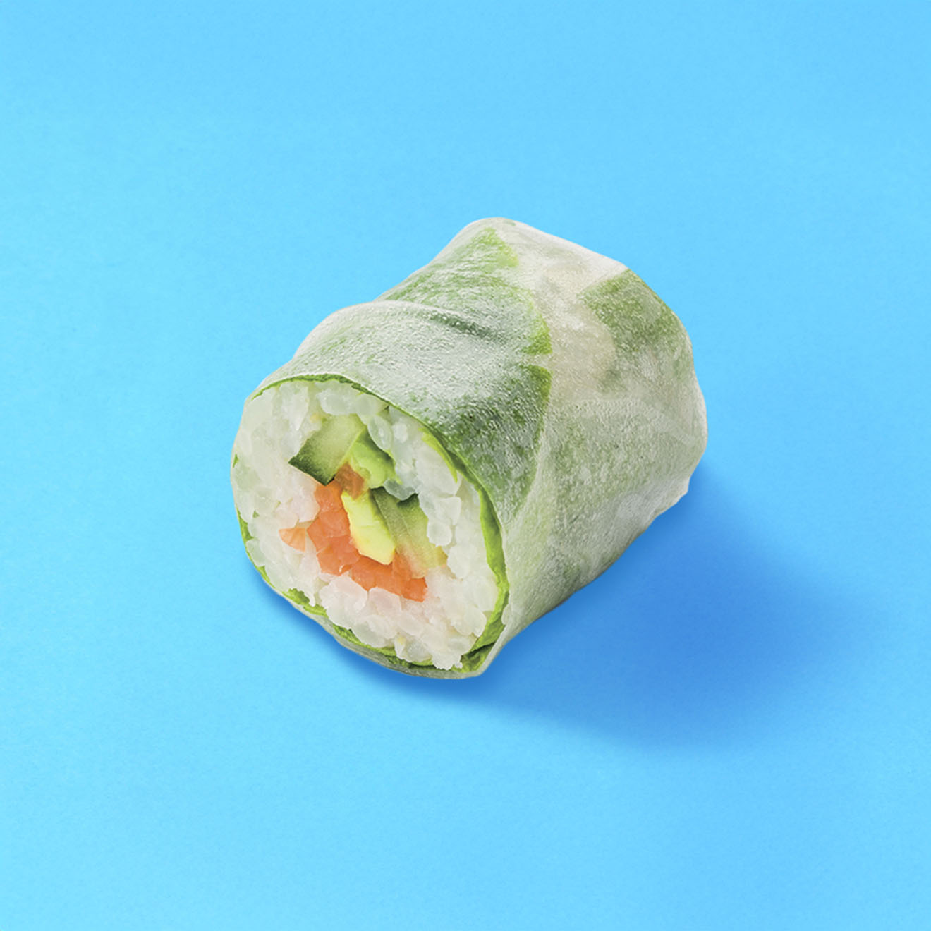 SAUMON, SALADE, AVOCAT, CONCOMBRE, CORIANDRE, MENTHE, TOBIKO.