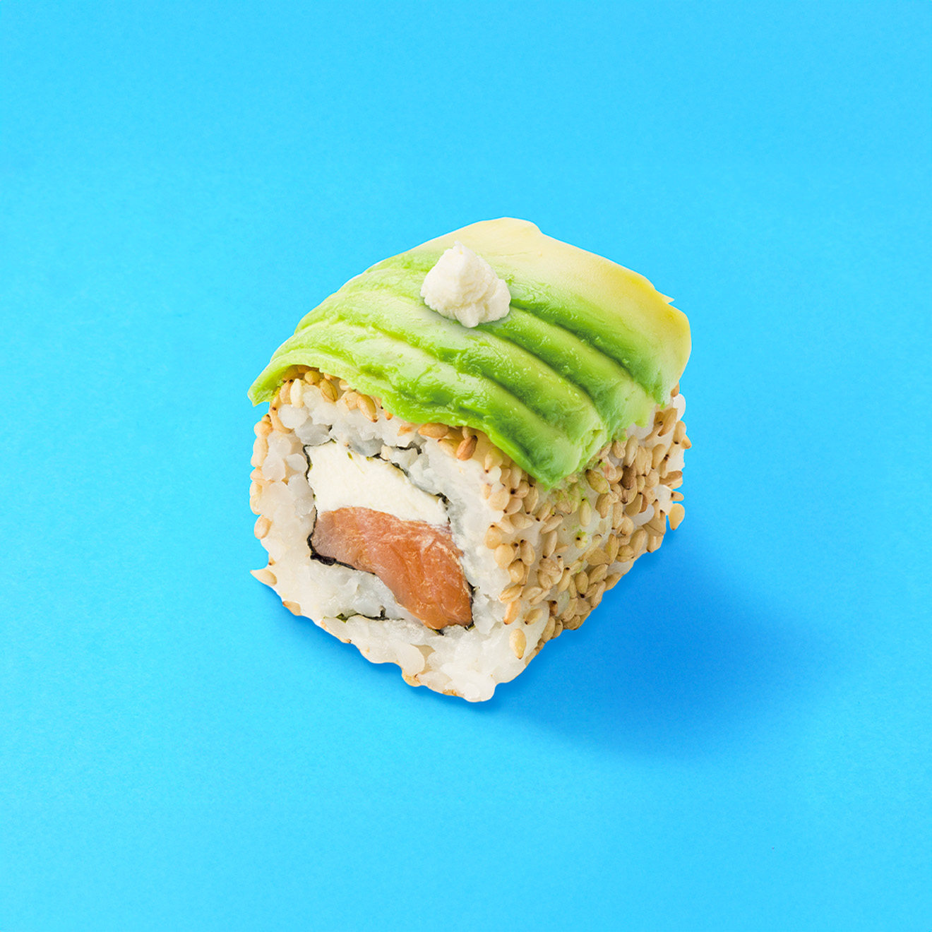 SAUMON, CREAM CHEESE, AVOCAT ET TOBIKO.